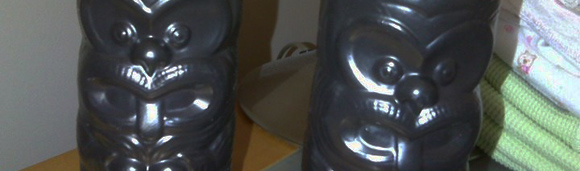 So obviously, my first instinct was to contact grandma and ask her about it. "About those weird ceramic tiki cups, what were you doing at one of the most expensive restaraunts in Detroit!? You're a farm girl!", I asked her. She replied, "Oh those ugly old things? I tried selling those for 8 years at our rummage sales for a nickel and nobody would buy them. I got them in Flint (MI) at a restaraunt called The Copper Penny back in the 80's. You got one of those cups every time you ordered a special drink."